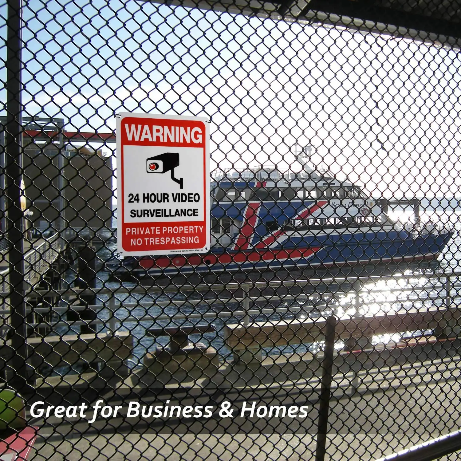 24-hour Private Property No Trespassing Sign, Video Surveillance Signs Outdoor Security Camera Sign for Home CCTV